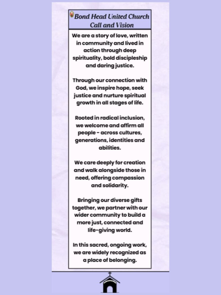 Who are we? Bond Head United Church Call and Vision Share this: Share on X (Opens in new window) X Share on Facebook (Opens in new window) Facebook Like Loading...